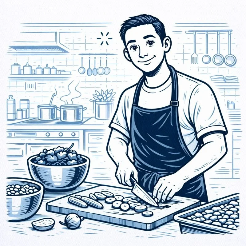 Ondersteuning bij schoonmaak, snijwerk, lunchkok en mise-en-place.